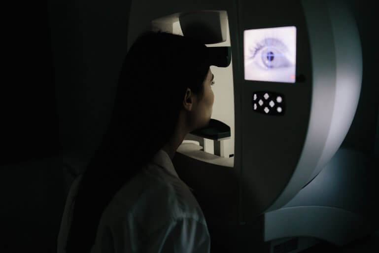 Dabei blicken Patienten auf einen zentralen Fixpunkt, während Lichtimpulse aus unterschiedlichen Winkeln wahrgenommen werden müssen.