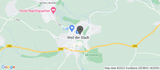 Um mit dem Auto zu uns zu gelangen, sollten Sie die Bundessstraße B295 von Stuttgart aus nach Westen nehmen. In Weil der Stadt fahren Sie auf die Leonberger Straße ab und folgen ihr bis hin zur Paul-Reusch-Straße.